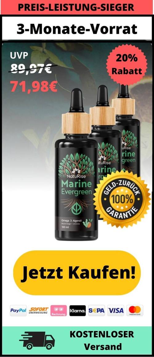 Mit dem Kauf des Algenöls erhältst du kostenfrei eine 100% Geld-Zurück-Garantie für 50 Tage dazu. Wenn du nicht voll und ganz mit den Ergebnissen zufrieden bist, erhältst du eine vollständige Erstattung innerhalb von 48 Stunden nach Eingang der Rücksendung. Der Rückversand ist kostenlos und ohne Angaben von Gründen möglich. Du kannst sogar leere Flaschen zurücksenden. So sicher bin ich mir, dass du - wie auch die anderen 41.000+ Kunden - einzigartige Ergebnisse für deine Gesundheit erzielen wirst.